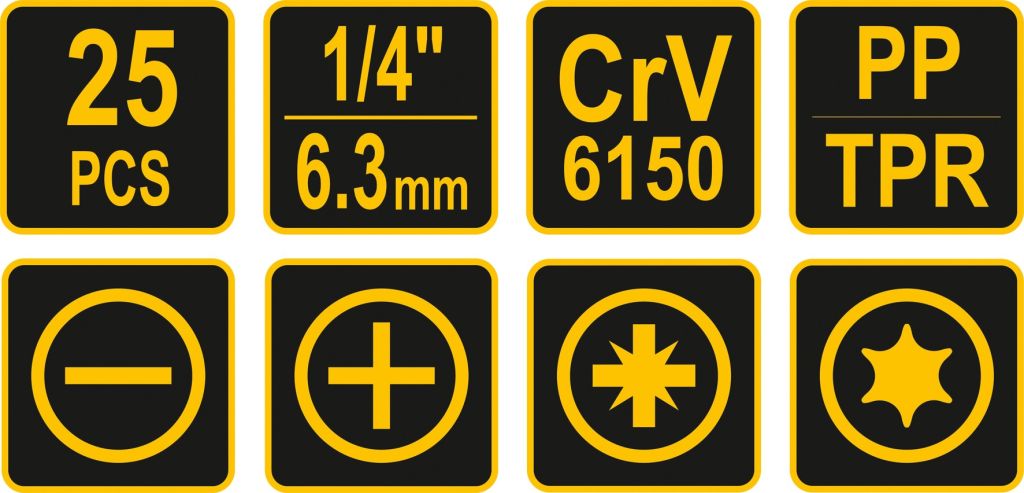 - bit šroubovací: PH: PH0; PH1; PH2; PH3 (25 mm)