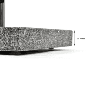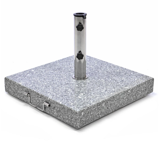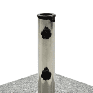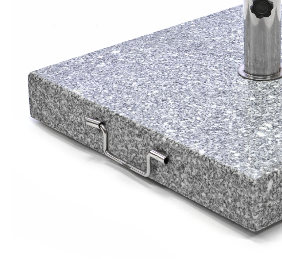 Stabilní a elegantní stojan na slunečníky do průměru 4 metry z leštěné žuly v kombinaci s nerezovou ocelí. Zapuštěná kola na spodní části a rukojeť z nerezové oceli pro snadnou přepravu.Dodává se s 2 plastovými objímkami s vnitřním průměrem 39 a 50 mm pro uchycení slunečníku.