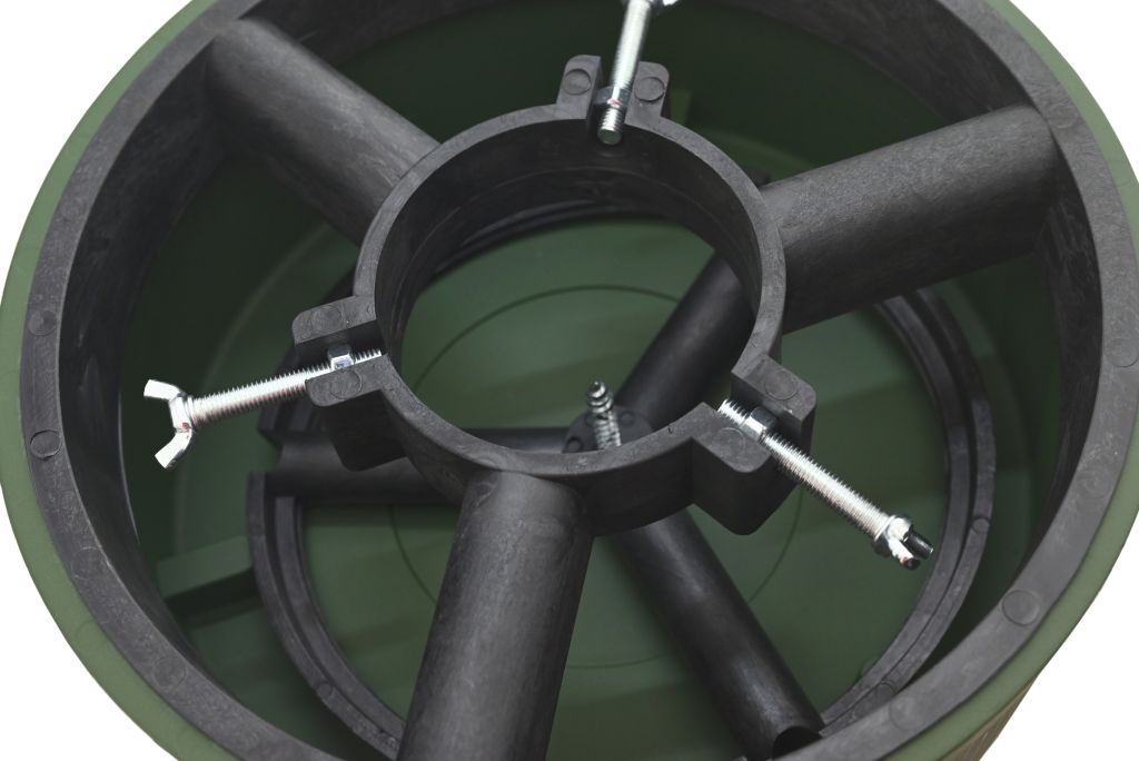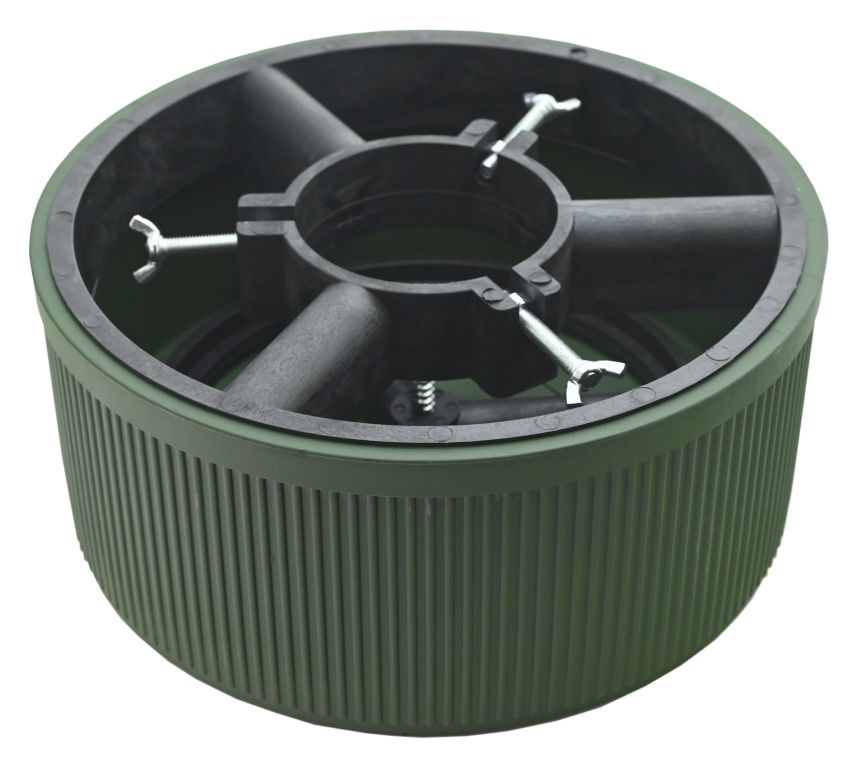 Tělo stojanu je zhotoveno z odolného materiálu, který lze pro vyšší stabilitu naplnit vodou, pískem, nebo zeminou.