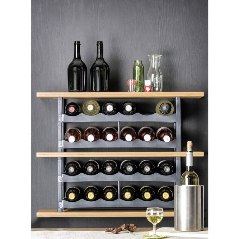 Plastový stojan na lahve nabízí prostor pro 6 lahví. Jednotlivé moduly lze na sebe stohovat a vytvořit stabilní regál na víno. Kvalitní provedení od švýcarské značky Rotho.