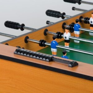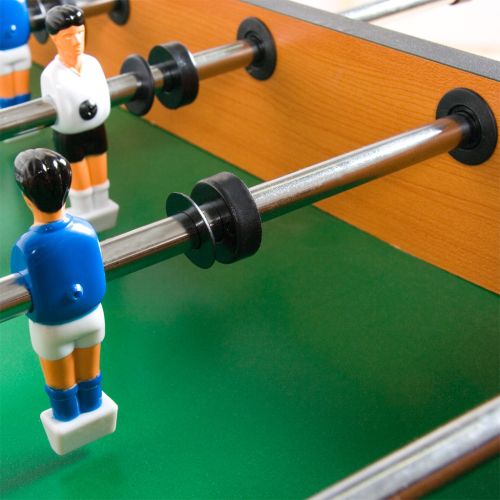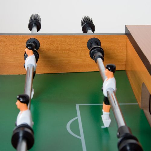Kvalitní stolní fotbal za skvělou cenu! Je velmi stabilní a zaoblené kovové rohy chrání před poškozením dřevěného dekoru. Má protiskluzové rukojeti pro lepší a pohodlnější hru a šroubované malované figurky. Hrany fotbálku jsou zkosené, míč vám tedy nebude zůstávat v rozích. Fotbálek sestavíte velmi snadno a rychle. Součástí balení je podrobný obrázkový návod k montáži, který obsahuje též tipy, jak o něj co nejlépe pečovat. Kvalitní stolní fotbal z MDF má praktické kovové hrany, které ho chrání před opotřebením. Rozměry: 128 x 62 x 87 cm.