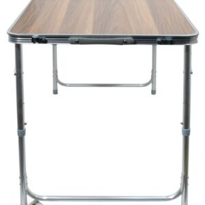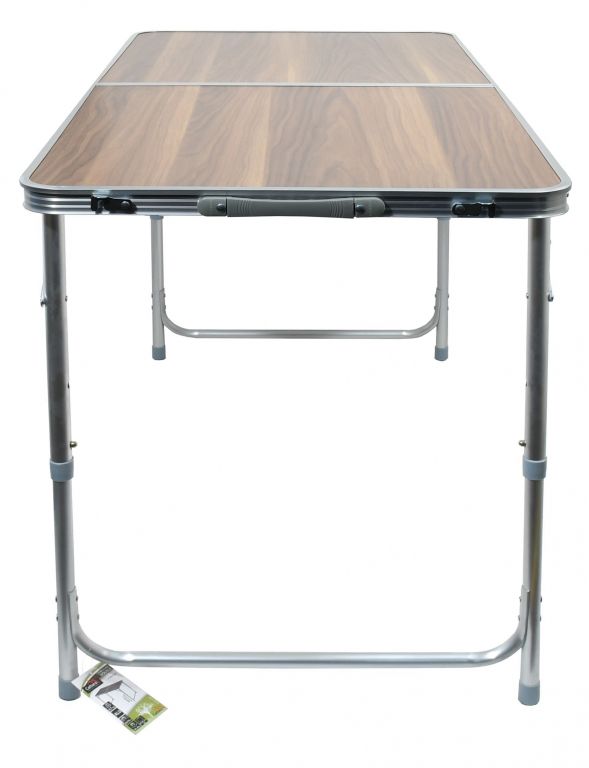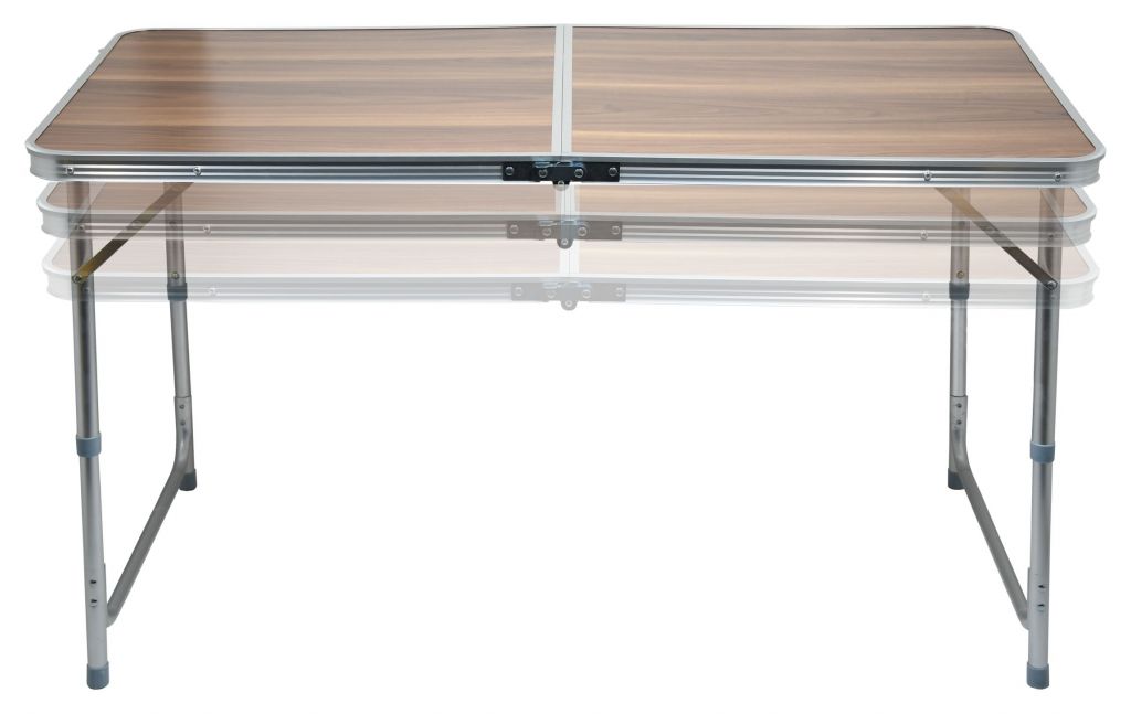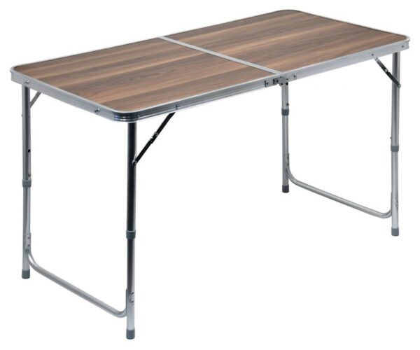 Stůl je vybaven dvěma roztahovacími nohami, které dodávají vysokou stabilitu. Nohy jsou ve svých pozicích zajištěny, takže nehrozí nechtěné složení, navíc je možné jejich teleskopické výškové nastavení ve dvou zajištěných a jedné krajní poloze. Stůl najde uplatnění jak na zahradách, tak v kempech. Plocha stolu je zhotovena z pevné dvoudílné umakartové desky, nabízející pevný podklad pro stolování. Plocha desky je snadno omyvatelná.