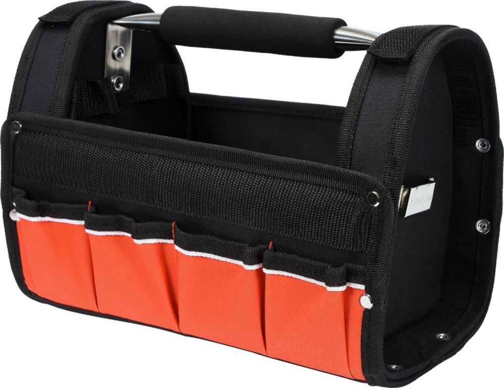 Praktická otevřená taška na nářadí zhotovená z odolného polyesteru 600D se zesíleným dnem odolným proti vlhkosti. Taška je vybavena 9 kapsami pro nejrůznější použití. Rukojeť je zhotovena z oceli a je uzpůsobena pro držení tvaru tašky, i při přenášení těžkých nákladů.
