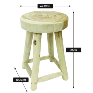 Tento dekorativní a praktický kus nábytku se jistě stane ozdobou vašeho domova, chodby, koupelny a dalších místností. Stolička je obzvláště atraktivní díky svému zaoblenému sedáku. Stolička je vyrobena z teakového dřeva, které se pyšní výraznou přírodní kresbou a snadno se o ni pečuje. Každá stolička je ručně vyrobená, a proto je jedinečná. Mohou se vyskytnout minimální odchylky ve velikosti a kresba dřeva je také jedinečná. Dřevo je neošetřené, ale snáší určitou vlhkost. Použití venku ve větru, nepříznivém počasí a dešti je na vaše vlastní nebezpečí. Nedoporučujeme; bohužel nemůžeme přijímat reklamace z důvodu povětrnostních podmínek. Dřevo použité k výrobě pochází z udržitelných plantáží.