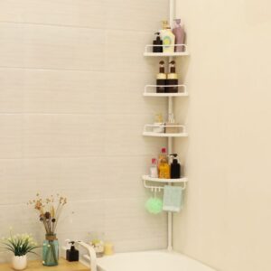 Konstrukce z ocelových trubek a odolného PP plastu zajišťuje stabilitu a dlouhou životnost. Teleskopická tyč umožňuje nastavení výšky od 85 do 305 cm, takže se přizpůsobí každé koupelně. Nosnost každé police je 3 kg a montáž zvládnete bez nářadí během pár minut.