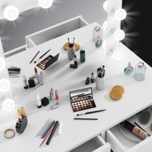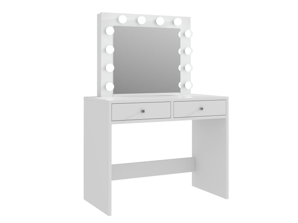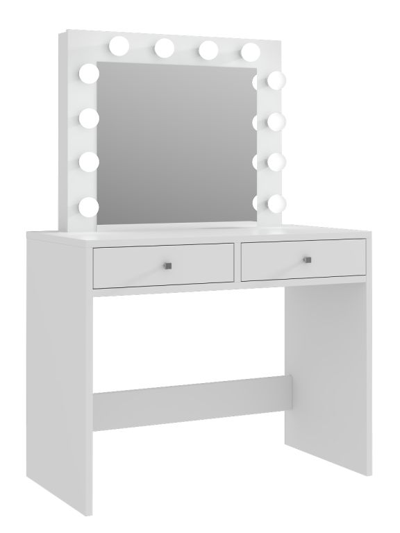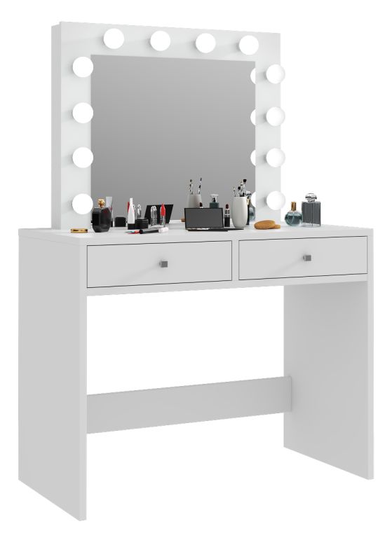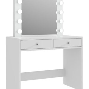 Profesionální kosmetický toaletní stolek v hollywoodském stylu se dvěma zásuvkami. Vytvořte si doma nebo v kosmetickém studiu jedinečné a profesionální zázemí pro každodenní líčení – tento elegantní toaletní stolek v klasické matné bílé barvě je kombinací luxusu a funkčnosti.