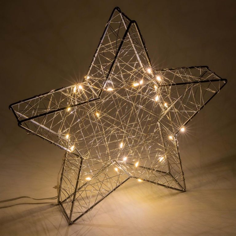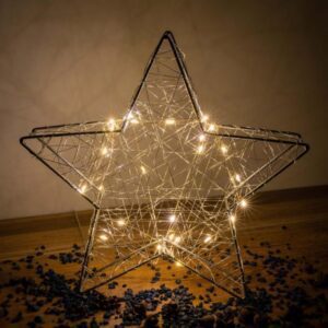 Světelná dekorace v designu hvězdy z kovu nabízí mnoho možností provedení, ať už vedle vánočního stromku, na okně nebo na poličce, tato světelná hvězda zajistí útulnou vánoční atmosféru. Světelná hvězda je vhodná pouze do interiéru, třída krytí IP 20 – testovaná bezpečnost. Díky baterii je dekorace nezávislá na zásuvkách, může být tedy umístěna kdekoliv v místnosti. Hvězdu lze ovládat pomocí časovače – po nastavní intervalu se světlo samo zapne a po 6 hodinách se opět samo vypne. Vhodné pouze pro vnitřní použití.