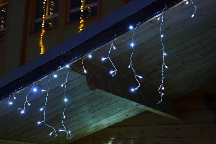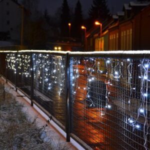 Světelný déšť se 144 LED diodami a teple bílým světlem se stane Vaším oblíbeným vánočním doplňkem. Vytvořte si s tímto osvětlením u Vás doma to pravé vánoční kouzlo. Je možné ho využít jak ve vnitřních prostorách, tak i venku. LED diody jsou oblíbenou náhradou za klasické žárovky. Oproti klasickým žárovkám LED diody nevyzařují teplo, jsou odolné proti otřesům a můžete díky nim ušetřit až 90 % energie, které byste jinak spotřebovali na klasické žárovky. Průměrná životnost LED diody je 2000 hodin svícení (normální žárovka cca 1000 hodin v závislosti na svítivosti). LED řetěz splňuje německé normy a je na něj vystaven certifikát bezpečnosti GS. Splňuje stupeň krytí IP 44 (pro venkovní použití). Bez blikající funkce. Řetěz obsahuje časovač – 6 hodin světlo, 18 hodin nečinnost.