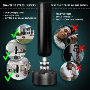 Zažijte dokonalý způsob, jak vybít stres, zlepšit kondici a posílit celé tělo. Volně stojící boxovací pytel o výšce 175 cm je ideálním parťákem pro trénink úderů i kopů, ať už patříte mezi zkušené boxery, nebo si chcete dopřát energické odreagování po náročném dni. Díky atraktivnímu designu v černo-stříbrné kombinaci skvěle zapadne do každé domácí posilovny.