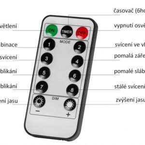 Světelný řetěz je vhodný pro vnitřní i venkovní použití – jak na okno či chodbu, tak i na dům nebo stromek. Osvětlení není výhradně určeno pro dobu Vánoc, ale můžete ho využít i pro osvětlení Vašeho stanu či zahrady během letních měsíců. Nejvíce na něm oceníte napájení na baterie – už nemusíte řešit vzdálenost k zásuvce.LED diody jsou oblíbenou náhradou za klasické žárovky. Oproti klasickým žárovkám LED diody nevyzařují teplo, jsou odolné proti otřesům a můžete díky nim ušetřit až 90% energie, které byste jinak spotřebovali na klasické žárovky. Průměrná životnost LED diody je 2000 hodin svícení (normální žárovka cca 1000 hodin v závislosti na svítivosti). Na krabičce s bateriemi můžete nastavit časovač (osvětlení bude 6 hodin od nastavení svítit a 18 hodin v nečinnosti), nebo můžete osvětlení ručně zapnout či vypnout. Samozřejmostí je také 8 světelných funkcí: různé kombinace, svícení ve vlnách, sekvenční svícení, pomalá záře, rychlé blikání, pomalé slábnutí, jiskřivé blikání, stálé svícení.