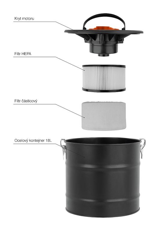Vysavač popela je určen především k vysávání chladného popela z kamen, kotlů, krbů, grilů na pevná paliva v domácnosti. Díky vysavači je možné odstranit nánosy popílku a sazí ve špatně přístupných místech zanesených topenišť. Vysavač je vybaven vícestupňovým filtračním systémem (filtr typu Hepa a nečistotový filtr), má ohebnou sací hadici, pojízdná kolečka a také disponuje funkcí dmychadla (foukání vzduchu). Sací hadice je tepelně odolná a je zakončena hliníkovou sací hubicí. Nádoba na popel je vyrobena z nerez oceli a její objem činí 18 litrů.