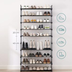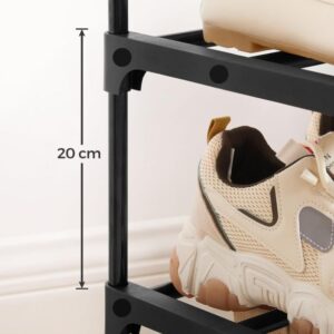 Tento vysoký botník je ideálním řešením pro každého, kdo potřebuje maximální úložný prostor na co nejmenší ploše. Díky 10 úzkým policím pojme až 50 párů bot, přičemž jeho subtilní konstrukce ponechá vaší předsíni nebo šatně stále vzdušný vzhled. Snadno zapadne do moderního interiéru a díky univerzální černé barvě nebude poutat nežádoucí pozornost.