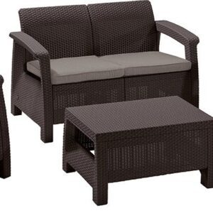 Souprava Corfu je pohodlné a moderní posezení jak ven, tak do interiéru. Souprava je vyrobena z lisovaného plastu v imitaci...