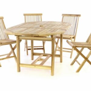Zahradní set DIVERO z teakového dřeva – stůl + 4 skládací židle