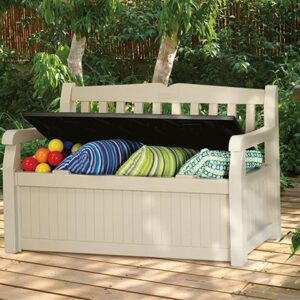 Plastová lavice s úložným prostorem.