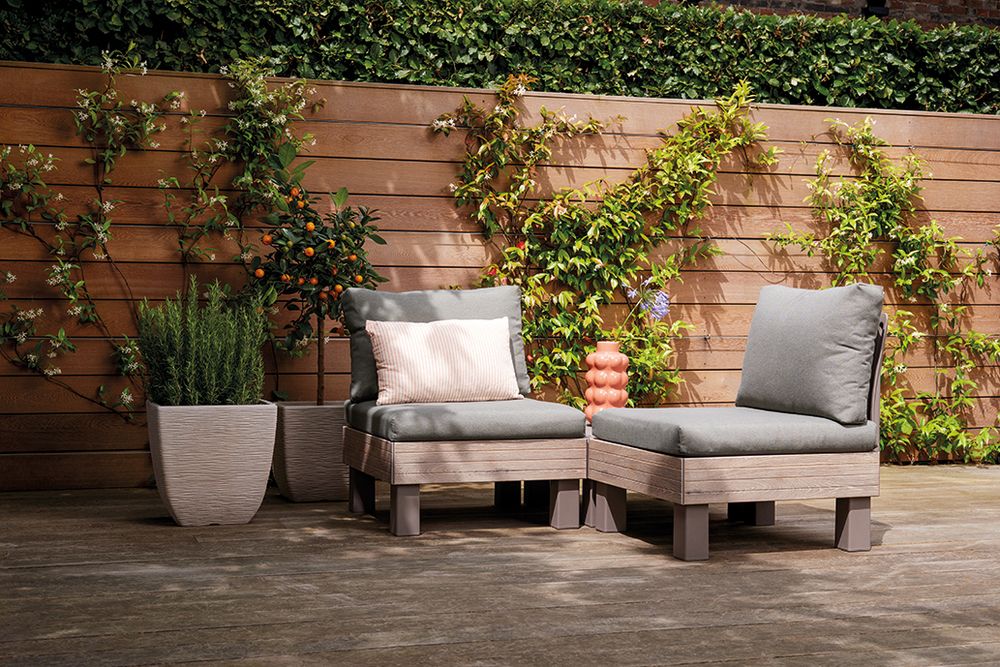 Robustní konstrukce z lisovaného plastu zajišťuje dlouhou životnost a odolnost vůči počasí i UV záření. Jednoduchá montáž a údržba šetří čas, zatímco protiskluzové podušky z polybavlny zaručují maximální komfort. Kovové spojky umožňují snadné propojení s dalšími moduly.