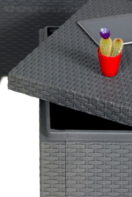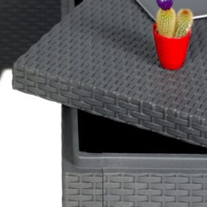 - Odolný materiál – lisovaný plast s imitací ratanu je trvanlivý a snadno se čistí.