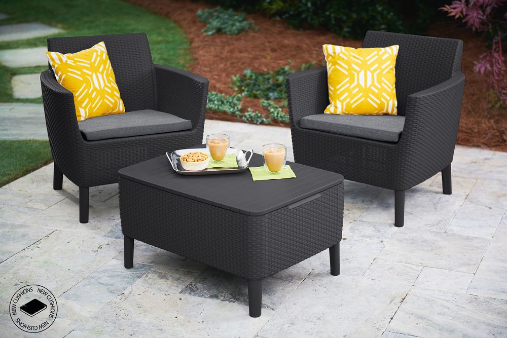 Salemo balcony je naprostá novinka na trhu, souprava která skvěle vynikne v moderním i retro stylu bydlení. Jedná se o elegantní set v imitaci ratanu, skládající se ze dvou křesel a stolu. Produkt je dodáván s pohodlnými poduškami ve stylových barvách. Lehká a stabilní konstrukce nábytku se skvěle hodí do exteriéru i interiéru. Set je velmi snadný na údržbu. Výrobek je vysoce odolný proti UV paprskům a povětrnostním vlivům.